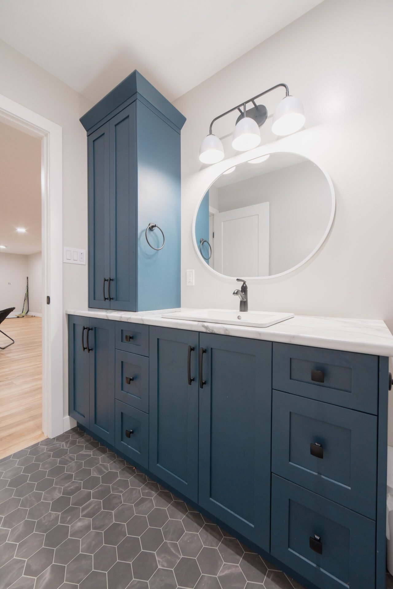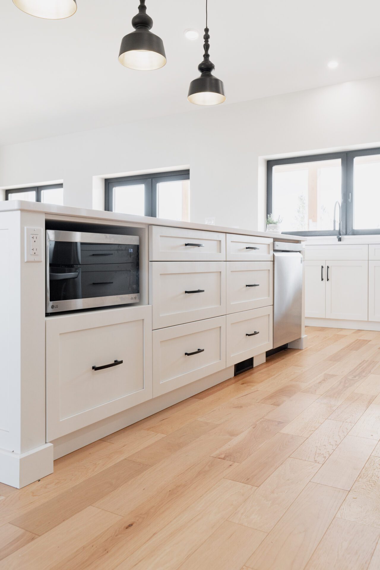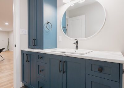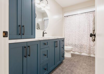Cabinetry Color – Benjamin Moore – White Dove, Gentlemans Grey, Custom Maple Stain