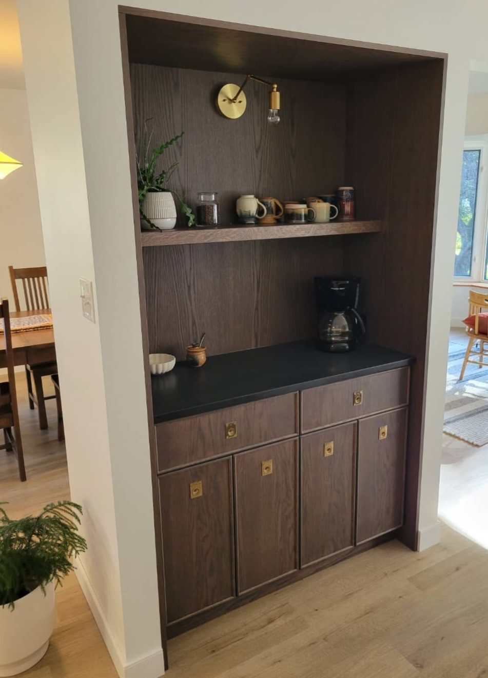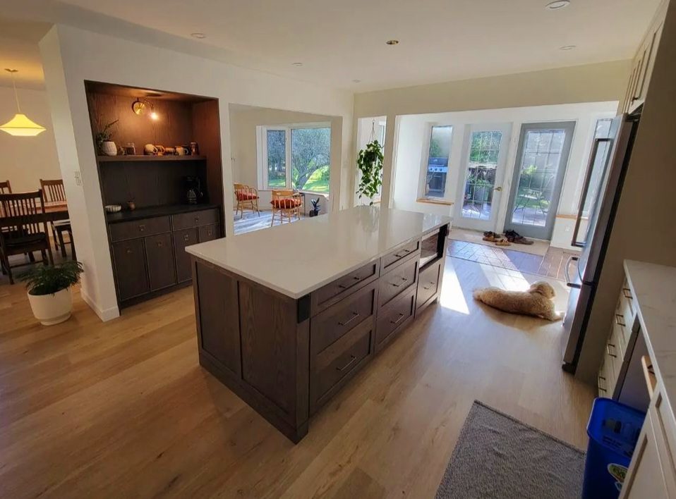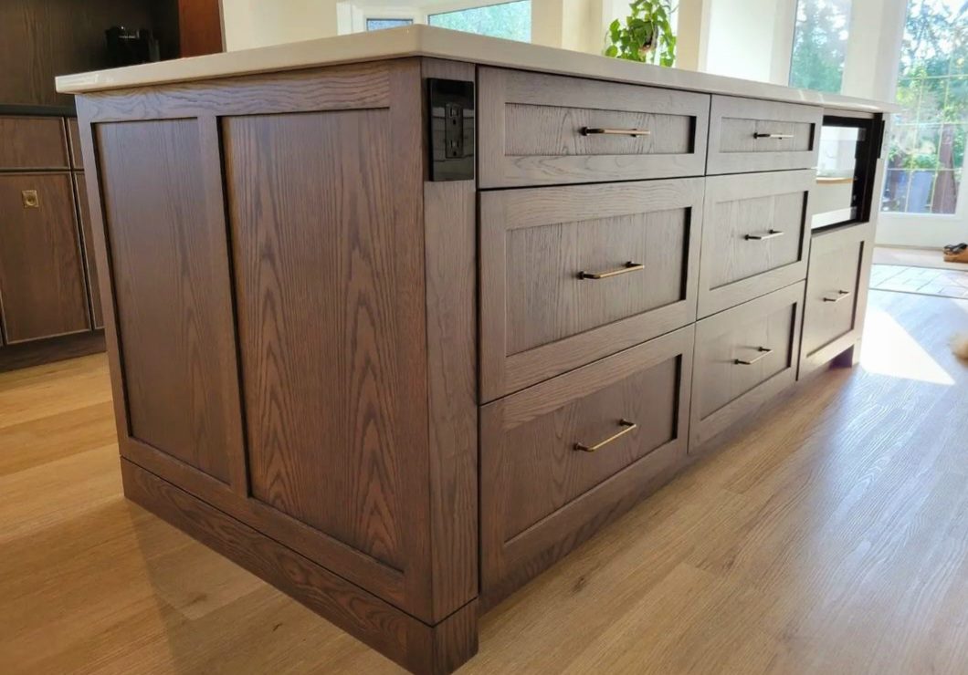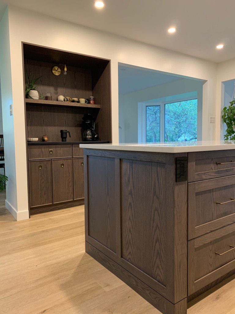 Island & Open Shelves – Custom Stain