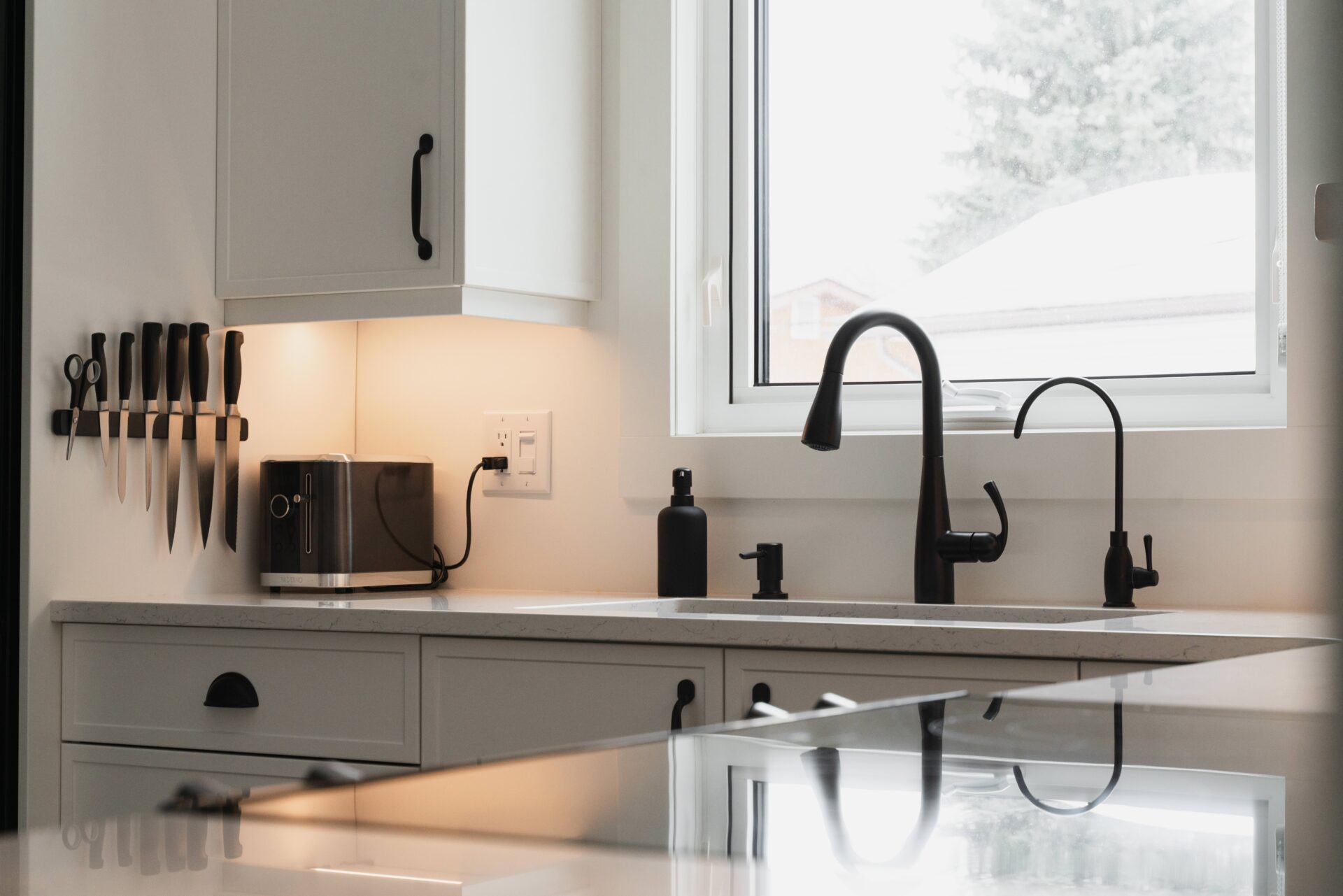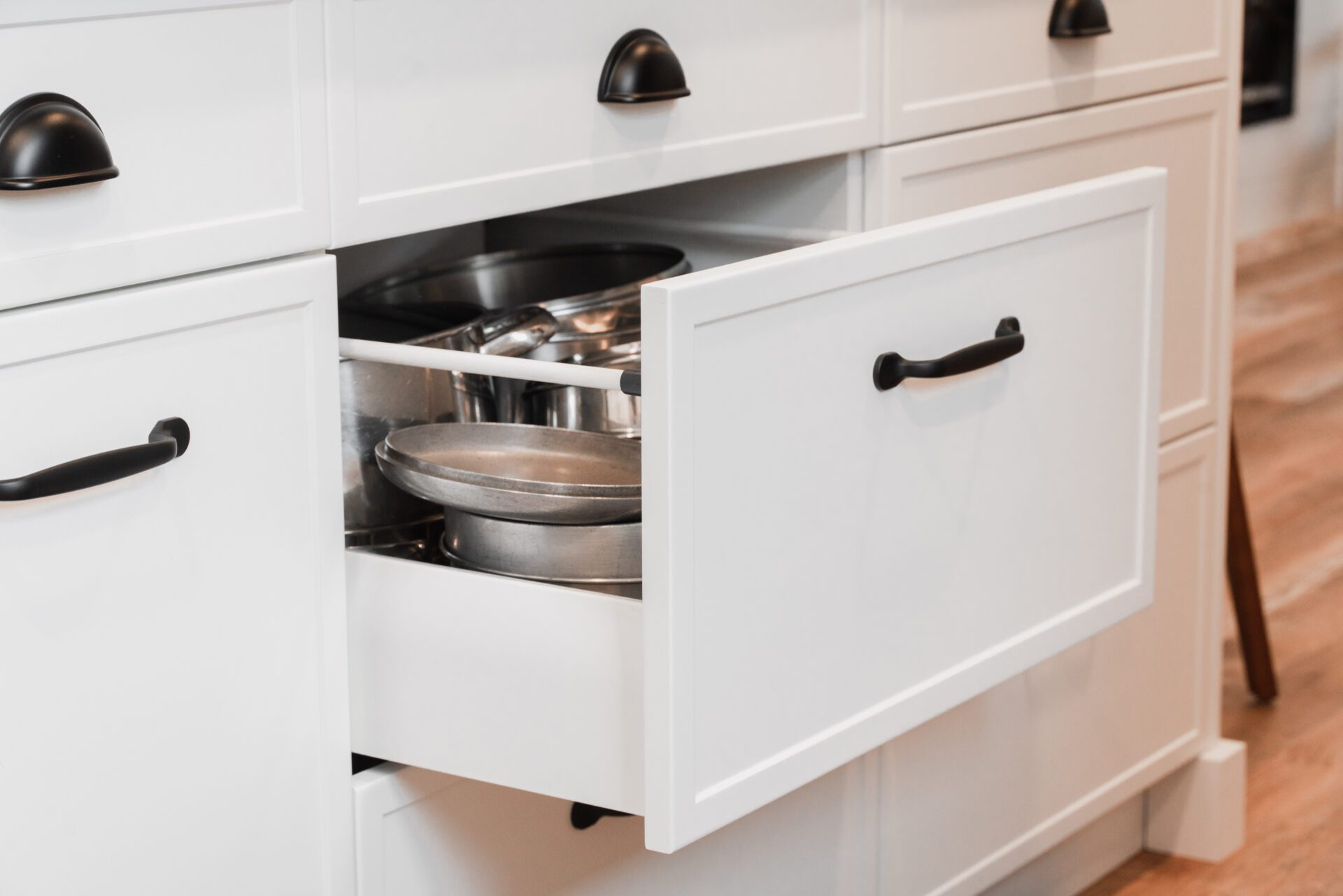 Hardware – Handle #2377 Matte Black, Cup pull #6440 Matte Black